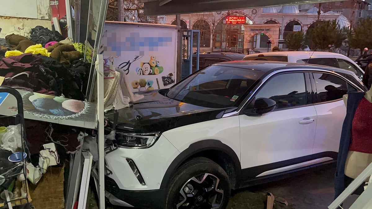 İşyerine otomobil daldı! Ölümden sun anda kurtuldular